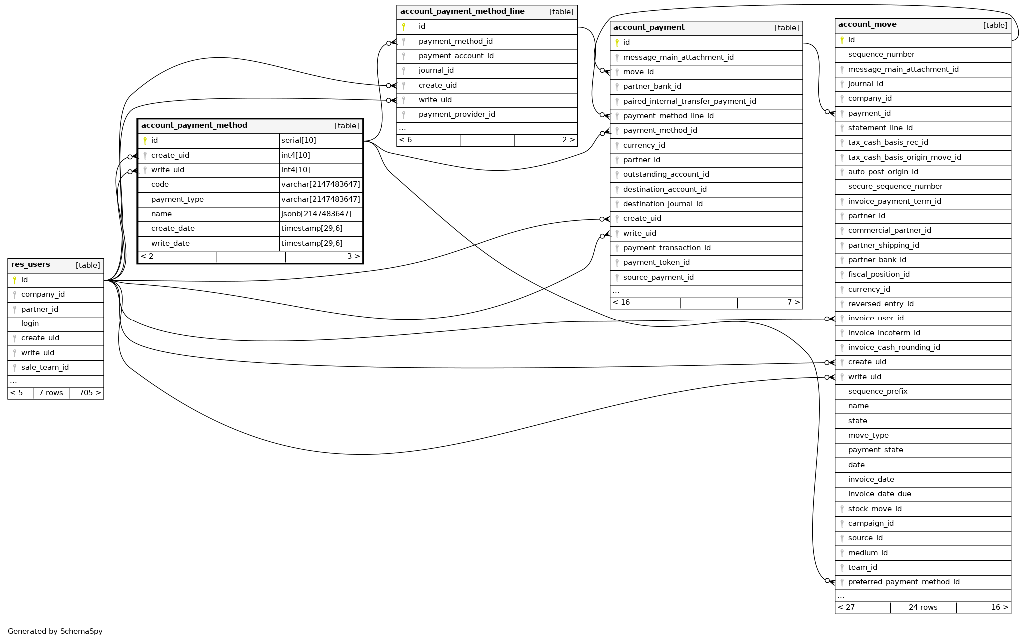 | account_payment_method_pkey | Primary key | Asc | id |