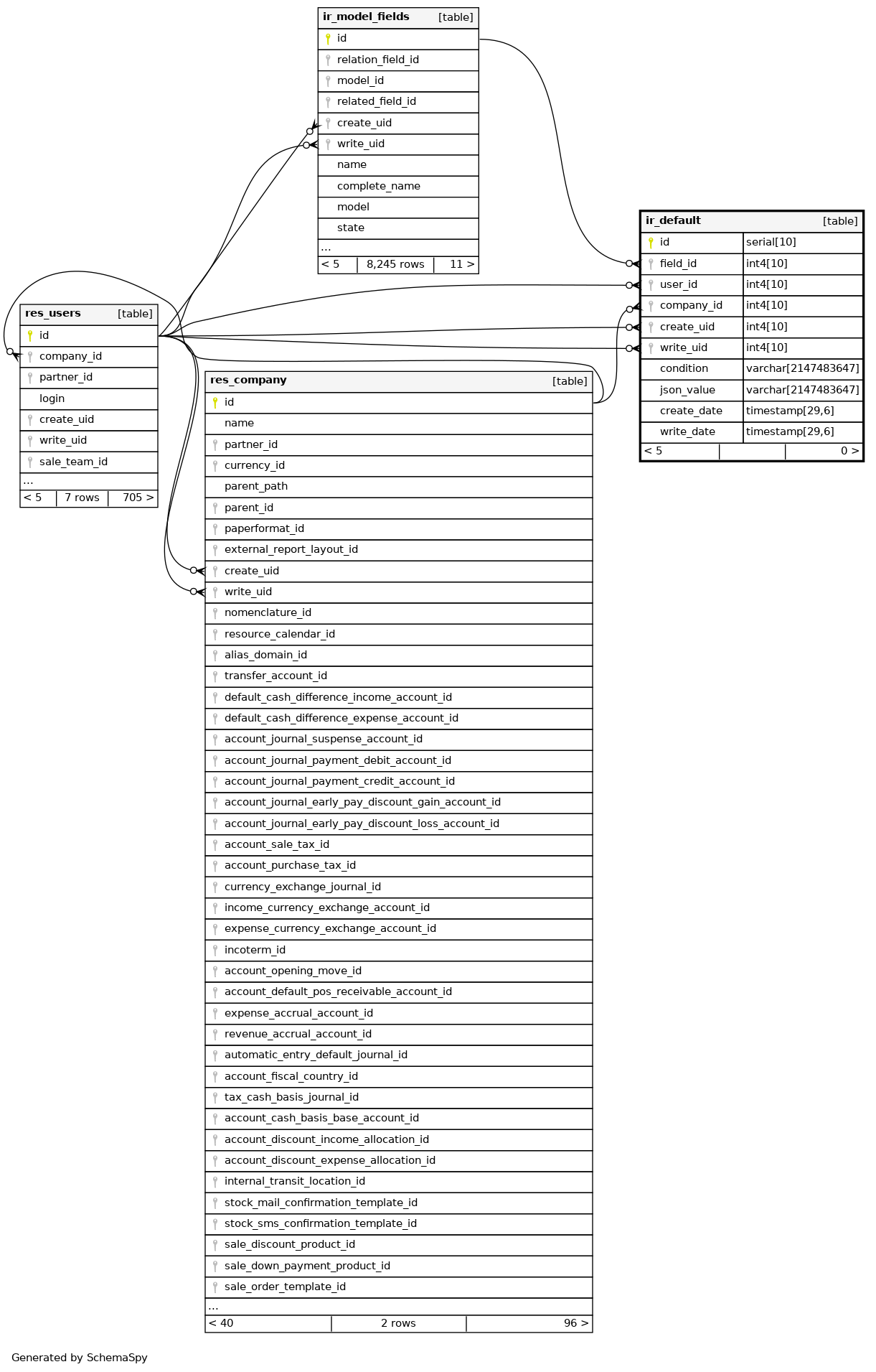 | ir_default_pkey | Primary key | Asc | id |